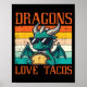 Poster Dragon Love Tacos Engraçado Comida mexicana Fiesta