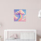 Artwork of a cloud with a rainbow pouring out of it in a pastel painting style. This design re-imagines the classic rainbow icon into something truly special. This whimsical illustration features a fluffy, marshmallow-soft cloud in dreamy shades of pink and lilac. A vibrant rainbow cascades down like a waterfall, sprinkling dust and sparkles into the sky. The soft, pastel palette of baby blues, violets, and warm yellows creates a calming yet cheerful atmosphere, making it the perfect addition to a nursery, playroom, or kid's bedroom.