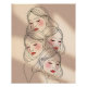 Dreamy Cluster of Female Faces, Four female faces are stacked vertically, each adorned with soft blush and closed eyes. The lines are clean and the colors are gentle, creating a serene and calming atmosphere.