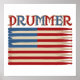 Pôster Drum Stick USA Flag Drummer Camisetas e presentes