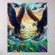 Poster Duas Águia Bald Capturando Peixes Sobre A Água 16x