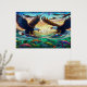 Poster Duas Águias-Baldas pescando peixes sobre um rio vi