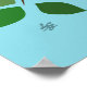 Um par de galinheiros sentados num galho de árvores com folhas decorativas num fundo azul claro