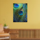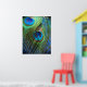 Esta fotografia de uma pena de pavão azul foi tirada com uma lente de olho de peixe. Estas duas penas têm uma bela cor para esta poster. O fundo azul mostra as cores nos olhos da pena de pavão. Decorem o vosso quarto com estas belas penas e um azul perfeito.