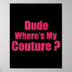 Poster Dude Where's My Couture Funny Sarcastic Saying Wom