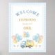Welcome guests in sweet style with this dump truck first birthday welcome poster! Featuring a cute truck carrying gifts and balloons with soft baby blue gingham pattern borders, this sign is perfect for a boy’s first birthday party. Customizable with name and age, it creates a charming entrance display for your little one’s special day.