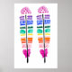 Penas desenhadas à mão, com o arco-íris sobre fundo branco sólido.