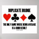 Se você jogar ponte duplicada, você vai gostar do humor de ponte intenso com este poster que apresenta os quatro naipes de placa junto com o ditado "Ponte Duplicada - O Único Jogo Onde Ser Média É Um Bom Resultado". Façam outros fazerem uma dupla tomada no conceito de média e chegarem a um jogo médio no mundo da ponte com esta ponte memorável dizendo poster!