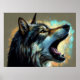 Duro Pastel Desenho Lobo Howling A proporção é de 4:3. Ele foi projetado para ser impresso como 32x24"