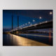 Foto noturna da ponte "Rheinkniebrücke" em Düsseldorf, Alemanha. Foto © Sebastian Worm.