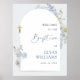 Poster Dusty Blue Floral Arched Boy Baptism Welcome Sign