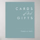 Este sinal de cartões e presentes Dusty Boho | Blue é perfeito para o seu casamento rústico e boêmio colorido. Seu design moderno simples e único, acompanhado por uma fonte minimalista contemporânea e paleta de cores azul empoeirado, dá a este produto um charme clássico e boêmio. Deixe-o como está ou personalize-o com arte ou gráficos de sua escolha. Você também pode procurar outros produtos dentro desta coleção para unir todo o seu casamento!