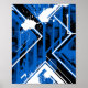 Poster Dynamic Blue Geometry with White Paint Splashes