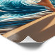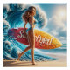 Pôster Dynamic Surfer Girl Walking Beach Waves Art