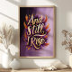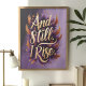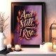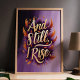 Adote sua força interior com esta incrível arte de parede "E Ainda Ergo-me". Com tipografia dourada ousada rodeada por penas laranja e roxas vibrantes, este design é uma celebração de resiliência e empoderamento. Perfeito para adicionar inspiração à sua casa, escritório ou como um presente significativo, esta peça irradia confiança e determinação com suas cores ricas e mensagem inspiradora.