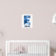 Poster "E" Dinossauro Aquarela Azul Nome da Criança Poste