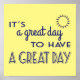 É um dia Excelente para se ter um poster para o Excelente do dia para uma atitude positiva e uma mensagem inspiradora feliz. Ícone solar e tipografia divertida trazem sorrisos. Excelente citação para sala de aula ou escritório. Altere a cor do plano de fundo, se quiser.