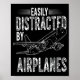Poster Easily Distracted By Airplanes Funny Plane Lovers