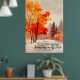 A poster da Escritura de Citação Inspirativa retrata uma bela paisagem de cor d'água de outono, incluindo árvores com folhas coloridas vermelhas e laranja do outono. Ele apresenta a Bíblia Verse Eclesiastes 3:11, "Ele fez tudo bonito em seu tempo."