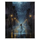Uma cena noturna digital sonhadora, pintada a óleo, onde uma menina dança alegremente na chuva em uma rua urbana brilhante, luzes refletindo sobre o pavimento molhado em uma celebração romântica e deslumbrante de liberdade e amor.