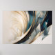 Linhas fluidas e formas aguçadas se entrelaçam em um movimento elegante entre tons de marfim e azul profundo. Uma dança abstrata que transmite expansão, energia e harmonia, como se o espaço se desdobrasse em ondas de luz e mistério.