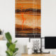 Uma paisagem abstrato construída sobre tons sujos evocando o calor e a vastidão de um deserto iluminado pelo sol. As linhas brancas geométricas criam janelas visuais para interpretação, enquanto que as explosões de tinta laranja quebram a rigidez com energia dinâmica. Uma expressão equilibrada de estrutura e emoção, controle e caos.