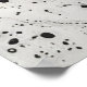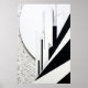 Linhas verticais e diagonais pretas e brancas sobem de um fundo cósmico texturizado, sugerindo uma cidade abstrata em ascensão. Uma fusão de minimalismo e energia urbana.