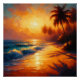 Uma pintura que captura a poesia de um pôr do sol tropical, onde o sol transforma o céu e o mar em um espetáculo de ouro. Palmeiras fluem em sombras laranja, e cada onda reflete a promessa de calma, calor e possibilidades infinitas.