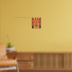 Este design de deco de arte apresenta um retrorreflector alto com um fundo vermelho e branco de rajada atrás do prédio. #building #tower #retro #artdeco #american #iconic #structure #trendy #legal