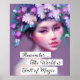 Citação: "O Mundo é Cheio de Mágica." Flores bonito e roxas guiam o espírito de conto de fadas asiático arte de fantasia de solteira. Texto. GenerativeContent
