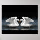 Esta fotografia da natureza foi digitalmente melhorada, criando uma imagem espelhada de um cisne branco mudo. As sombras na água e o fundo são pretos. Um coração foi criado onde os dois cisnes se encontram. A cor da imagem é preto e branco com um pouco de azul na água e um bico amarelo no cisne. Esta é uma imagem de animal divertida para a sua casa ou decoração de escritório.