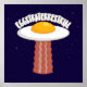 Vetor cartoon ilustra um delicioso e ensolarado OVNI fritado com um raio trator de fatia de bacon com texto EGGSTRATERRESTRIAL. Palavras-chave: ovo, bacon, café da manhã, OVNI, alienígena, ensolarado, lado, desenho animado, espaço, extraterrestre, comida, fofo, gema, ficção científica, ficção, marciano, humor, carne, porco, rapto