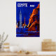 poster de viagens vintage para o Egito (egípcio em francês) mostrando uma antiga estátua faraó Ramses em primeiro plano e uma cidade modernista em segundo plano. As iniciais da RAU devem representar a participação do Egito no século XX, médio, na República Árabe Unida com a Síria (République Arabe Unie em Francês). posters viagens vintage nos dão uma olhadela nostálgica ao estilo idealizado, à moda, ao transporte e aos destinos favoritos do passado.