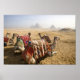 Egito, Cairo Camelos descansando olham através das areias do deserto de Gizé para as famosas pirâmides egípcias fora do Cairo � Dave Bartruff / SuperStock.com