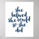 Ela acreditava que podia, Poster motivacional, este é o presente mais perfeito para si mesmo, família e amigos.