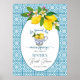 Um design elegante com fundo de azulejo azul e uma xícara de limões.