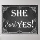 Ele perguntou ela disse "Sim" placa de adereço de foto de noivado impressão de quadro-negro