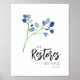 Este encorajador verso bíblia do Salmo 23:3 "Ele restaura minha alma" significa a poderosa ação de Deus de renovar nosso ser interior, trazendo um profundo senso de paz e conforto que só vem de Deus. Design de aquarela apresenta uma flor azul delicada com uma letra elegante de caligrafia.