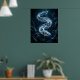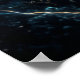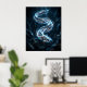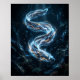 Energize your space with this Electric Eel wall art featuring a sleek eel formed from flowing water, glowing currents, and crackling plasma energy. Brilliant blue-white arcs travel along its elongated body, lighting the surrounding depths with dramatic motion and intensity. Set in a dark underwater world with floating particles, rocky silhouettes, electric trails, and layered ocean shadows, this artwork feels bold and immersive. Perfect for gaming rooms, offices, studios, and modern interiors. A striking marine statement print for ocean lovers and fantasy art collectors.