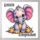 Uma imagem adorável para o quarto de uma criança. Um elefante de desenho animado fofo com o texto, "elefante ansioso".
