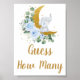 Poster Elefante Azul Floral Adivinha Quantos Sinais