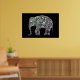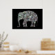 Lindos brilhos brilhantes prateados brilham elefantes. Você pode personalizar a poster preta. Foto de mosaico prateado não brilha de verdade!