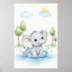 Poster Elefante Fofo Brincando na Água