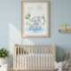 Este elefante bebê alegre brinca de forma divertida em uma poça de água cintilante em um dia ensolarado. Com olhos grandes e azuis brilhantes e um sorriso feliz, este adorável elefantezinho aproveita a água fresca enquanto está cercado por árvores verdes suaves e nuvens brancas fofas. Esta ilustração doce e encantadora traz calor e felicidade para qualquer quarto de criança ou berçário.