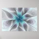 Pôster Elegance Modern Blue Cinza White Fractal Art Flowe
