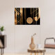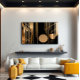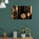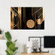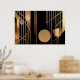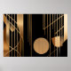 Transforme seu espaço com esta arte abstrata de luxo. Linhas douradas finas e círculos metálicos contrastam com preto profundo, criando uma composição sofisticada Art Déco. Ideal para decoração moderna e branding premium.