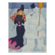 Esta ilustração mostra uma mulher elegante, vestida ao lado de um grande boneco de neve, grosso modo. A mulher é enfeitada em um elegante vestido preto vitoriano, com fritos vermelhos e um muff de pele, e seu cabelo de ouro é enrolado com um chapéu elegante no topo. O boneco de neve tem uma expressão alegre, mas levemente cansado, vestindo um chapéu, segurando uma vassoura, e fumando um cachimbo. O fundo apresenta uma paisagem nevada com árvores estéreis sob um céu azul-céu. A cena tem uma qualidade artística, caprichosa e ligeiramente surreal.