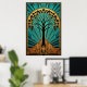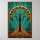 Poster Elegant Art Deco Maple Tree Silhouette Gold Teal