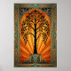 Poster Elegant Art Deco Willow Tree Sunset Gold