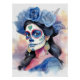 Pôster Elegant Blue Roses Watercolor Day of the Dead